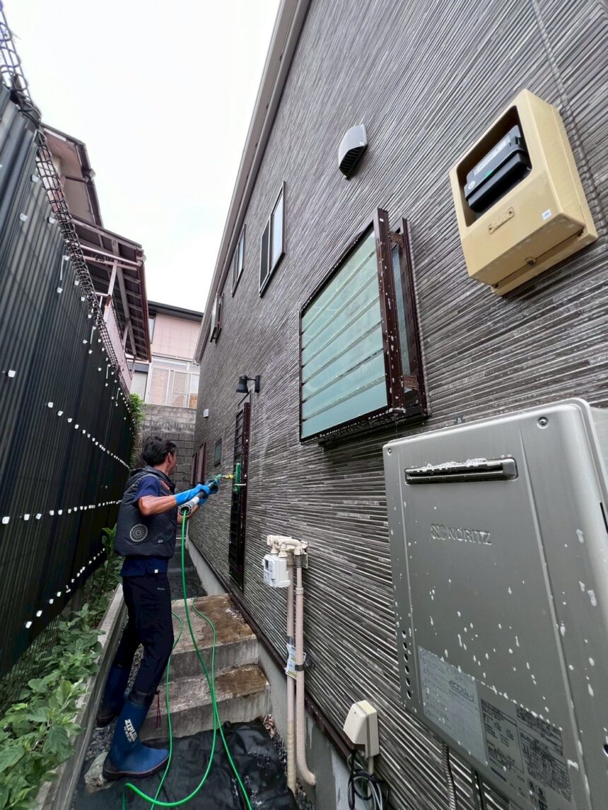 低い圧力の水を使い、外壁、屋根などを優しく洗浄する手法です